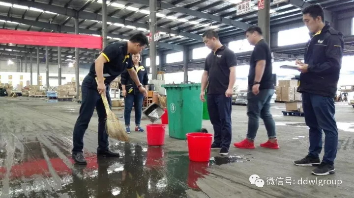 过程中,梅总还亲自示范如何彻底打扫库区卫生,“先扫灰尘,再铲泥浆、最后拖干。”