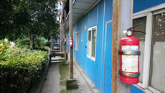这个星期内,园区对所有的过期、损坏的灭火器进行盘点更换,送由专业机构检修,板房的每个房间门口也加装了灭火器,消除安全隐患。